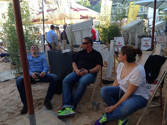 Juli 17 - Sand, Pool, fruchtige Cocktails und leckeres Essen. Klingt nach Urlaub, oder? Ist es nicht ganz, aber fast. Das Erlanger Team hat seine Mitarbeiter zu einem netten Strandfest am Erlanger Schloss eingeladen. Bei angenehmen Temperaturen, strahlendem Sonnenschein, diversen Cocktails, kulinarischen Köstlichkeiten und guten Gesprächen konnte man ganz entspannt den Arbeitstag ausklingen lassen. Dabei durften natürlich auch unsere köstlichen Hofmann-Cupcakes nicht fehlen.