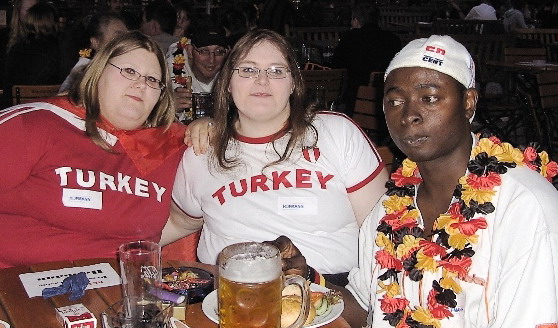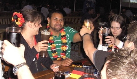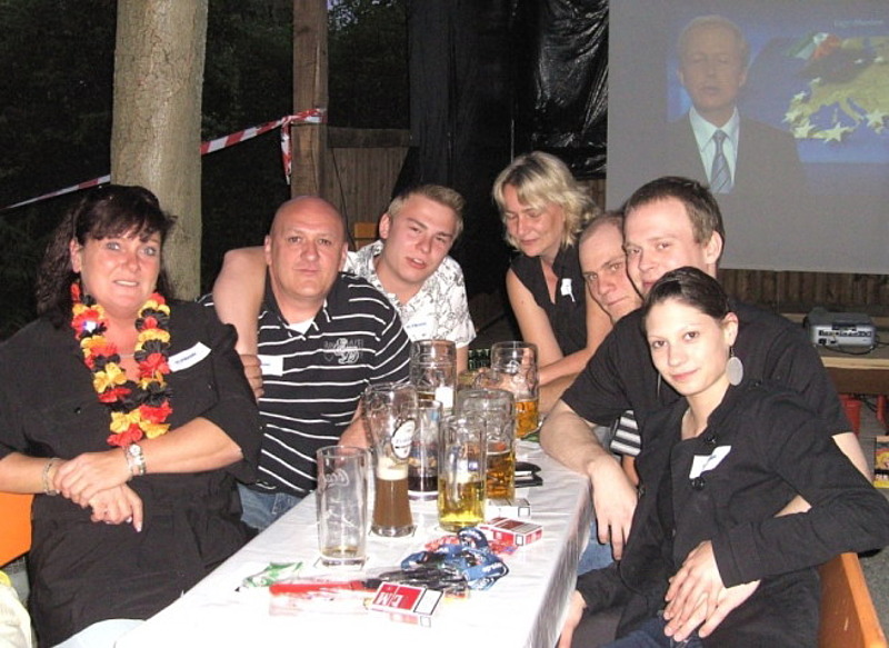 Juni 08 - Eine ganze Nation im Fußballfieber. Was gibt es Schöneres, als gemeinsam eine EM oder WM zu erleben? Das Würzburger Team nutzte die Gelegenheit und lud Mitarbeiter und Kunden mit Familien und Freunden zum gemeinsamen Public Viewing ein. „Die Stimmung ist immer wieder klasse“, meinte Niederlassungsleiterin Petra Bernhart. „Selbstverständlich haben auch wir unser schwarz-rot-goldenes Fußball-Equipment (Trillerpfeifen, Mützen und Hofmann-Fußbälle) verschenkt. Da die Nachfrage so enorm hoch war, werde ich vorsorgen und in zwei Jahren zur WM meinen Vorrat erweitern“, erzählt Petra Bernhart lachend. Schade, dass es vorbei ist!