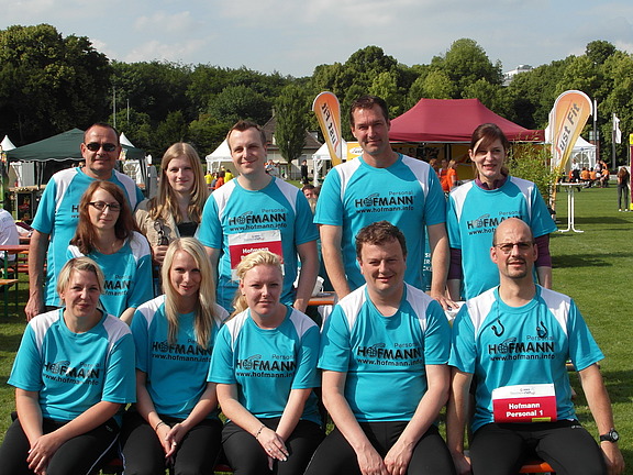 Juni 2012 - Mit insgesamt vier Hofmann-Teams zu jeweils drei Läufern und Läuferinnen nahm die Hofmann Region NRW im Juni am 5. HRS Business Run Cologne teil. Unter dem Motto „Laufe, Fiere, danze!“ gingen über 10.000 Teilnehmer von 650 Unternehmen aus Köln und Umgebung an den Start. Eine Fünf-Kilometer-Strecke lag vor ihnen.