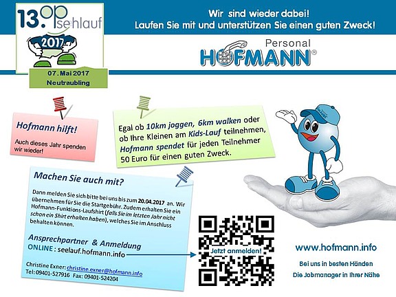 März 17 – Jedes Jahr sind wir dabei und laufen im Rahmen des Spendenmarathons für einen guten Zweck. Wir laden Sie herzlich ein, mit uns zu laufen! Oder schauen Sie einfach mal an diesem Tag bei unserem Jobmobil vorbei.