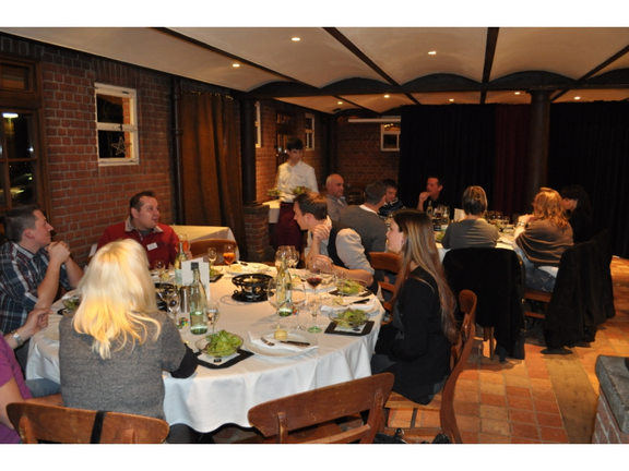 November 2010 - Wiemacht er das bloß? Eine Frage, die sich an diesem Abend viele unserer Gäste stellten. Doch der Magier Dirk Wiedmann versteht sein Handwerk und ließ sich im wahrsten Sinne des Wortes nicht hinter die Karten schauen. Stattdessen faszinierte er sein Publikum mit immer neuen Raffinessen, bezog es mit ein, las seine Gedanken und ließ es staunen. Ganz nebenbei durfte aber auch ein wenig geschlemmt werden, denn es gab ein Schweizer Käse Fondue. Dabei wurde dessen Tradition sehr ernst genommen. Es gab nicht nur vor dem Essen das obligatorische Kirschwasser, sondern auch für jeden, der ein Stück Brot im Fondue verlor. „Aufmerksamen Asterix-Lesern ist dieses Gebaren nicht unbekannt“, meinte schmunzelnd Niederlassungsleiterin Petra Bernhart.