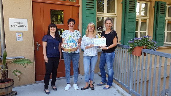 Juli 18 - "Es ist sehr beeindruckend, was in diesem Hospiz täglich geleistet wird. Mit großer Sorgfalt und Liebe versucht man, den Bewohnern den Alltag so angenehm wie möglich zu gestalten“, erzählt Steffi Dittrich tief beeindruckt. Zusammen mit ihrer Kollegin Nicole Dittrich wurde sie anlässlich einer Spendenübergabe über 250 Euro von Ramona Ployer und Betina Reinsch durch das Haus geführt.