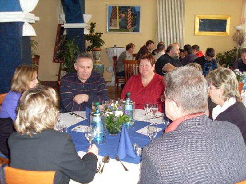 Zum gemeinsamen Mittagessen ging es zurück ins Café Centra, wo nicht nur ein leckeres Buffet, sondern auch der Weißenfelser Schusterjunge - ein Wahrzeichen der Stadt - die Gäste empfing und mit seinen launigen Geschichten unterhielt.