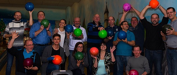 Dezember 17 – Ruhig wurde in der Niederlassung das Fest begonnen, nämlich mit einer Stärkungsmahlzeit und wunderbarem Weihnachtsgebäck. Doch dann ging es zur Bowlingbahn, wo man sich auf drei Bahnen ein Kopf an Kopf Rennen lieferte. Und selbstverständlich erhielten die drei Erstplatzierten ihre wohlverdienten Preise. „Danke schön an alle Mitarbeiter. Es war ein anstrengendes, aber auch sehr schönes Jahr und wir freuen uns auf die weitere Zusammenarbeit. Bleiben Sie alle fröhlich und gesund!“, meinte Niederlassungsleiterin Sandra Eichhardt.