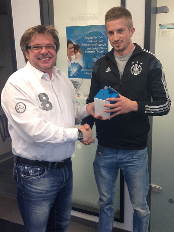 September 2014 – Sechs Jahre war Philipp Kossmann bei Hofmann Personal. „Doch nun ist leider Schluss“, bedauert Büroverantwortlicher Thomas Karsten, ergänzt aber gleich: „Ich freue mich natürlich für ihn, lasse ihn aber ungern ziehen, denn er war ein klasse Mitarbeiter.“