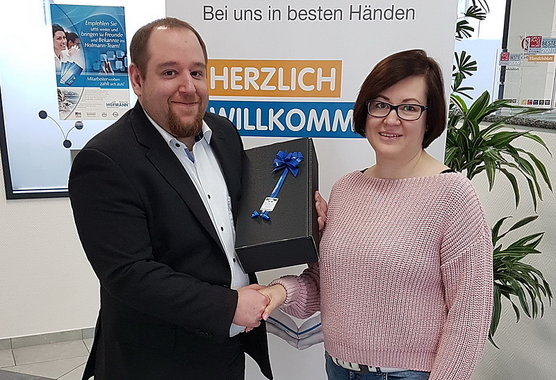 Nadja Hermann freut sich natürlich über diese berufliche Entwicklung, denn sie war mehrere Jahre in der Zeitarbeit tätig.“ Auch wenn ich mich bei Hofmann wohlgefühlt habe, ist es jetzt eine schöne Entwicklung, dass ich in das Unternehmen wechseln darf, in dem ich gerne arbeite und mich wohlfühle“, sagt sie.