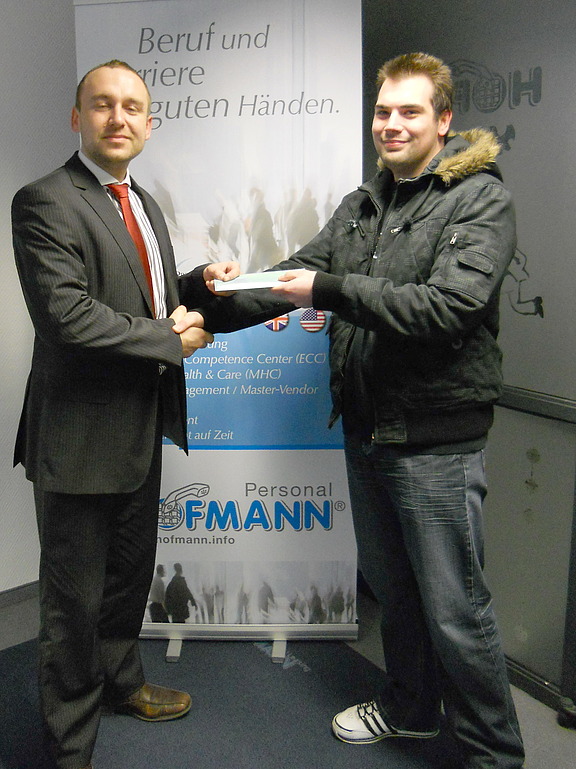Januar 12 – Die Werte-Karte, Basisinformation zu den Unternehmenswerten der Firma Hofmann, wird jedem neuen Mitarbeiter bereits bei der Einstellung überreicht. Damit diese wichtigen Informationen auch wirklich beim Mitarbeiter ankommen und nicht nur irgendwo abgeheftet werden, hat sich das Team etwas Besonderes einfallen lassen: Mit der Dezember-Abrechnung wurde den Mitarbeitern ein Quiz zu den Inhalten der Werte-Karte beigelegt, gemäß dem Motto: „Wissen Sie, was da drin steht?“. 45 von 110 Mitarbeitern haben den Fragebogen ausgefüllt und an der Verlosung der vielen Preise teilgenommen.