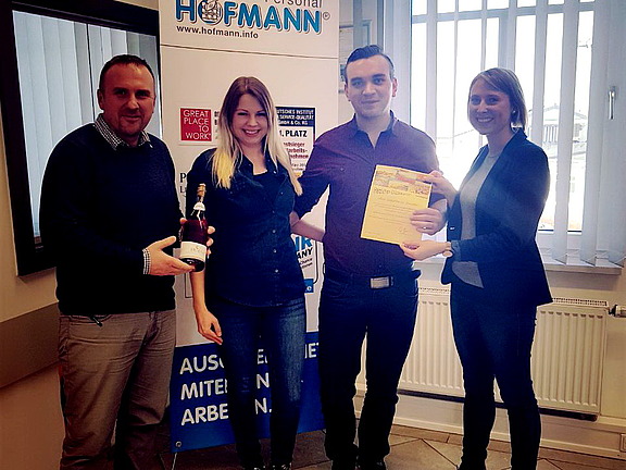 „Ich bin bereits seit 2015 Hofmann-Mitarbeiter und das ausgesprochen gerne! Darum empfehle ich uns auch gerne weiter", erzählt er. Vielen Dank, sagen Carina Retzer und Lucjan Spiegel.