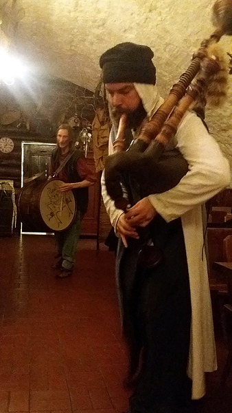 Durch den vergnüglichen Abend führten die Spielleute der „Tavernen Teufel“ bei Dudelsack- und Drehleiermusik. Lustige Anekdoten und jede Menge Humor brachte viel Erheiterung in die Gruppe.