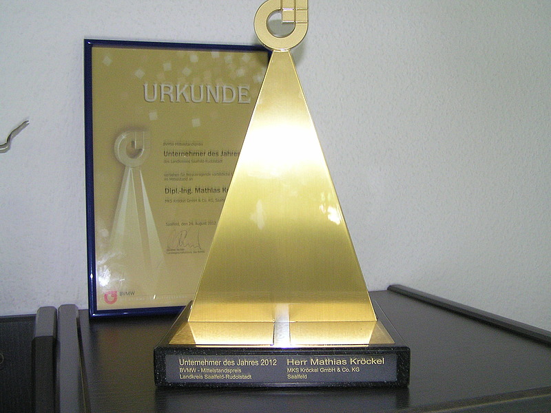 Mathias Kröckel freut sich über diese Ehrung und betont: „Diese Auszeichnung habe ich vor allem meinen engagierten Mitarbeitern bei MKS zu verdanken. Ein besonderes Dankeschön geht an meine Frau Evelin, die seit 1994 als Buchhalterin die Firma mit am Laufen hält.“