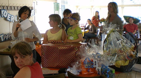 Juli 08 - „Klatschen, klatschen – mehr klatschen“, feuerte die kleine Marie Ostrowski alle Gäste an, als die Gewinner des Quiz ihre Preise entgegen nahmen, die die Dreijährige vorher aus der Lostrommel gezogen hatte. Sie konnte doch unmöglich zulassen, dass das Publikum bei so schönen Geschenken sich zwar freute, dies aber nicht lautstark zeigte - besonders als dann auch noch der Papa gewann.