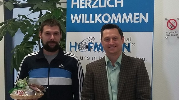 Juli 2016 - Büroverantwortlicher Arnd Kürzel ist guter Dinge: „Die Ansbacher Niederlassung gibt es jetzt seit zwei Jahren. Und schon haben wir ein 1-jähriges Jubiläum zu feiern: Herr Pöschl, der in der Produktion Metallverarbeitung tätig ist, ist im Juli seit einem Jahr bei uns!“