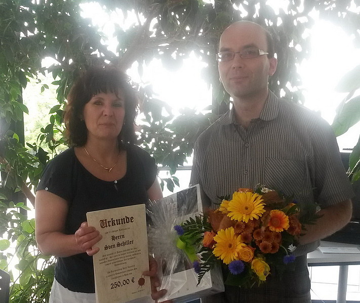 Juni 15 - „Herr Schiller gehört zu unseren zuverlässigen, freundlichen und engagierten Mitarbeitern. Wir freuen uns sehr darüber, dass er uns die Treue hält und gratulieren ganz herzlich zu seinem 10jährigen Jubiläum“, stellt Niederlassungsleiterin Ramona Eckardt zufrieden fest.