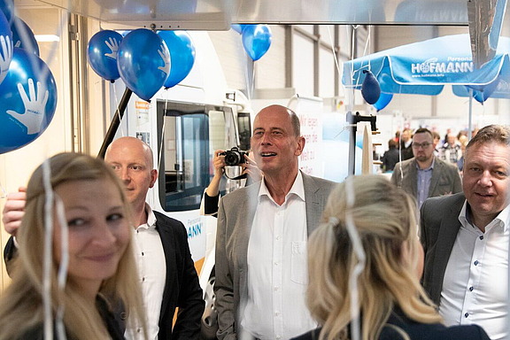 Juni 18 – „Als Personaldienstleister bauen wir nicht nur Brücken in den Arbeitsmarkt, sondern auch zu angesehenen Firmen der Region mit tollen Jobangeboten. Das hat auch Wirtschaftsminister Wolfgang Tiefensee interessiert, der sich bei uns und den Kollegen zum Thema Personalvermittlung und Zeitarbeit kundig machte.“, erzählt Regionalleiter Frank van Hees.