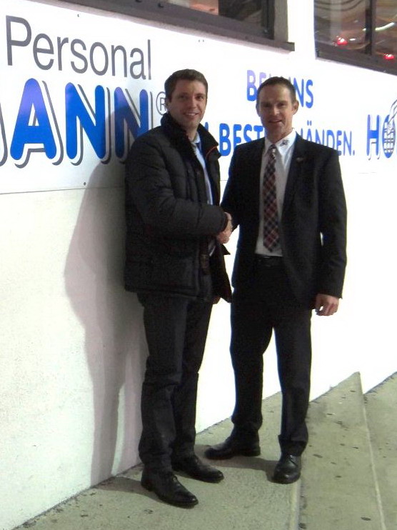 Dezember 12 - Die Cannibals und Hofmann Personal intensivieren Ihre Partnerschaft - die Niederlassung Landshut wird ab sofort Premium Partner. „Mit den Landshut Cannibals und Hofmann Personal finden zwei starke Partner noch mehr zueinander“, so Niederlassungsleiter Sascha Bolte. „Unser Motto lautet: Aus der Region für die Region. So sehen wir auch die Partnerschaft mit den Landshut Cannibals und haben uns deswegen dazu entschlossen, die Kannibalen noch mehr als bisher zu unterstützen.“ „Es freut uns, dass wir die Hofmann GmbH nun als Premium-Partner führen dürfen. Sascha Bolte bringt mit der Ausweitung des Engagements die Verbundenheit zum Kufensport in Landshut zum Ausdruck. Wir werden die Partnerschaft leben und der Hofmann GmbH auch etwas zurückgeben“, ergänzt der ehemalige Nationalspieler Jürgen Rumrich abschließend.