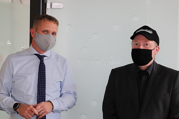 November 2020 – Wenn ein prominenter Musiker und Extrem-Sportler wie Joey Kelly in eine Firmenzentrale zu einem Geschäftstermin kommt, ist das für viele Mitarbeiter etwas Besonderes. Darum war ein Rundgang durch unsere Büroräume, verbunden mit ein paar Shootings, ein „Muss“ – natürlich mit Maske und Abstand! „Es gefällt mir, auf Fans zu treffen und macht mir Freude“, sagt Joey.