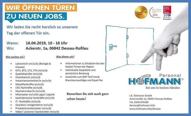 April 19 – Schauen Sie vorbei und informieren Sie sich unverbindlich über aktuelle Stellenangebote, die Möglichkeit der direkten Personalvermittlung, Karrierechancen bei unseren namhaften Kundenunternehmen in der Region.