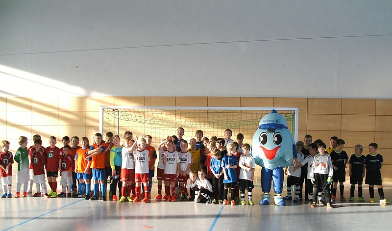 Dezember 2014 – „Unser Hofmann-Jobby-Maskottchen sorgte für ziemliche Aufruhr bei der Junioren-Mannschaft. Wann spielt man schon mal mit so einem Gegner? Das 9-Meter-Schießen „gegen“ unseren Jobby machte den Jungs sichtlich Spaß und wir freuen uns über die gelungene Überraschung“, erzählt Sachbearbeiterin Jana Menzel.