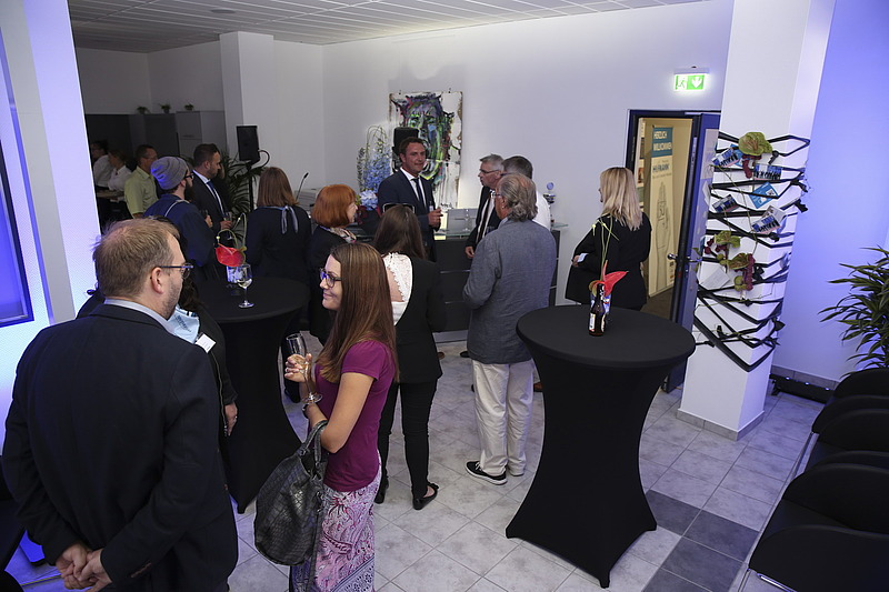 Juli 17 – Ich hoffe, unsere Mitarbeiter schauen jetzt noch lieber bei uns in der Niederlassung vorbei, als sie es bisher sowieso schon taten. Es würde mich freuen“, lacht Büroverantwortlicher Johannes Schinn und ist erleichtert, dass die Renovierungsarbeiten der Niederlassung nun abgeschlossen sind. Helle, freundliche Räume heißen die Besucher willkommen. „Wir freuen uns über diese schöne Niederlassung und haben deswegen zu einer kleinen Einweihungsparty eingeladen“, ergänzt Regionalleiter Thomas Müller. Eine Saxophonistin sorgte für den musikalischen Rahmen, während die Gäste die neuen Räume besichtigten und mit Sekt und Leckereien verwöhnt wurden.