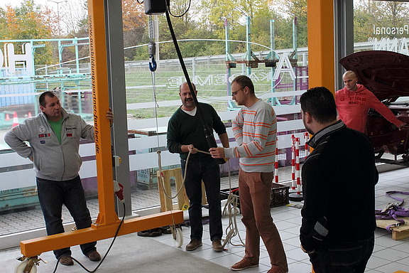 Oktober 2015 – „In den vergangenen beiden Wochen haben an zehn Unterrichtstagen insgesamt 103 Mitarbeiter, darunter erfreulicherweise auch einige Damen, erfolgreich ihre Ausbildung zum Kranführer absolviert! Alle Teilnehmer sind mittlerweile als Gabelstaplerfahrer bei Kunden im Einsatz. Sie benötigen diese Weiterbildung, weil sie bei den Gabelstaplern regelmäßig selbst die Antriebsbatterien wechseln und das ist ohne entsprechendes Wissen nicht sicher genug umzusetzen“, erklärt Akademieleiter Andreas Lichtenfeld. Schmunzelnd fügt er hinzu: „Ich würde sehr gerne auch noch mehr Frauen in diesen Berufen ausbilden. Man verdient gut, es sind sehr gute Arbeitsplätze und es gibt eigentlich überhaupt keinen Grund, warum diese Berufe eine Männerdomäne sind.“