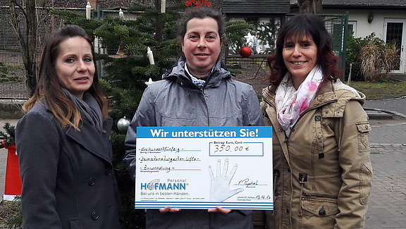 Dezember 2016 – Personalsachbearbeiterin Claudia Pfannschmidt hat sich gemeinsam mit ihren Kolleginnen überlegt, welche Einrichtungen in der Region mit einer Spende unterstützt werden sollten. Sie erzählt: Mitte Dezember haben wir den hiesigen „Heimatnaturgarten“ in Weißenfels besucht. Auf einer Fläche von ca. 12.600 m² kann man ca. 200 Tiere 50 verschiedener Arten in artgerechter Haltung beobachten. Ihre Gehege sind naturnah gestaltet. Für den Bau eines neuen Tiergeheges haben wir daher € 350,- gespendet, die wir über das Jahr im Rahmen der Hofmann-Spendenmarathons eingenommen haben.“