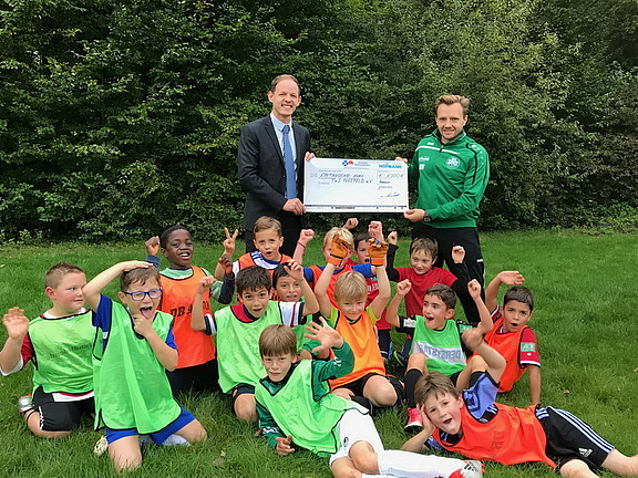 August 17 – Seit zehn Jahren gibt es den Hofmann-Spendenmarathon. Das Prinzip: Für jede Teilnahme an einem sportlichen Event von Mitarbeitern oder Hofmann-Freunden fließen 50 Euro auf ein Spendenkonto. Das gesammelte Geld wird einmal im Jahr an eine gemeinnützige Organisation in der Region gespendet. „Damit schlagen wir zwei Fliegen mit einer Klappe. Die Mitarbeiter werden sportlich motiviert und engagieren sich nicht nur für ihre Gesundheit, sondern auch für den guten Zweck“, erklärt Niederlassungsleiter André Schmidt. „Davon profitiert dieses Jahr erneut der Fußballverein TuS Kleefeld und seine Jugendförderung.“
