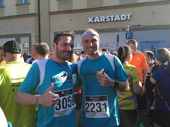Startschuss war der Bamberger Weltkulturerbelauf, an dem Benjamin Seemann und Ivo Nemetz teilnahmen. Am gleichen Tag starteten Kornelia Labuhn und Janek Binzen beim Residenzlauf in Würzburg. Im Mai folgte für Janek Binzen der MainCityRun in Schweinfurt, wo er es sogar auf‘s Siegertreppchen schaffte. Er belegte Platz 1. „Das war die beste Leistung im Halbmarathon. Das Hofmann-Laufshirt bringt mir Glück!“, meinte er.