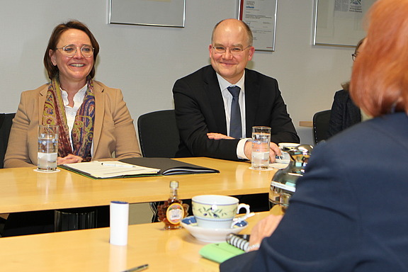 Januar 2019 – Mit großer Offenheit und Interesse trat uns Staatsministerin Annette Widmann Mauz gegenüber, die im Kabinett Merkel für das Thema „Integration von Flüchtlingen“ verantwortlich ist. Sie wollte wissen, welche Erfahrungen wir bei der Integration von geflüchteten Menschen machen, wie wir vorgehen und welche Hürden uns noch begegnen. Sehr gerne haben wir ihr Rede und Antwort gestanden.