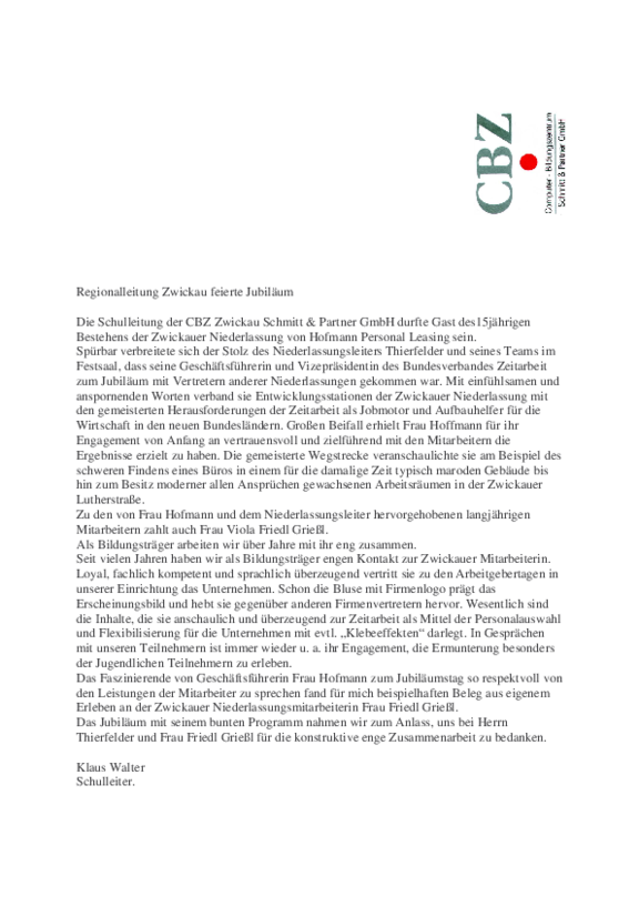 Die Vorbehalte sind längst verschwunden. Inzwischen beschäftigt die Niederlassung 285 Zeitarbeitmitarbeiter. Einige langjährige Mitarbeiter gehörten zu den über 100 Gästen, die bei der Jubiläumsfeier am 03. Juni im Brauhaus dabei waren. „Zu diesem Fest haben wir unsere Kunden eingeladen, um uns bei ihnen zu bedanken“ erzählt der Niederlassungsleiter. „Im September folgte noch ein Mitarbeiterfest. Schließlich sind sie es, die mit ihrer Zuverlässigkeit und qualifizierten Arbeit unseren guten Ruf haben entstehen lassen.“