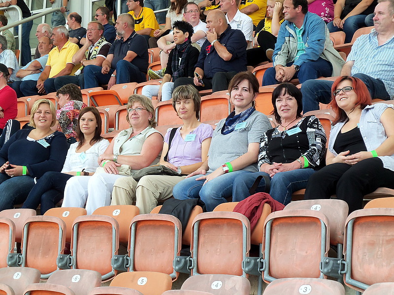 September 11 – Woran haben die meisten Menschen Spaß? Natürlich an Fußball! Also war klar: Das Hofmann-Familienfest findet auf dem Sportgelände des 1 FC Gera 03 statt, inklusive Spiel! Leider musste die Geraer Mannschaft gegen den VFB Auerbach eine Schlappe hinnehmen. Doch das vermieste unseren rund hundert Gästen nicht die Stimmung. Bei Torwandschießen, Minigolf und anderen Aktivitäten haben wir uns gemessen und viel Spaß gehabt. Die Besten wurden ermittelt und mit Preisen bedacht. Für die Kleinsten gab es natürlich auch Beschäftigung: Hüpfburg und Kinderschminken kamen wie immer gut an.