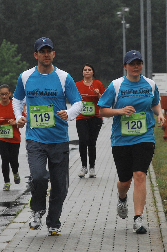 Mitläuferin Manuela Grubis stellt zufrieden fest: „Trotz Dauerregen hatten wir eine Bomben- Stimmung. Unser Hofmann Team war einfach Spitze. Wegen des Regens haben wir natürlich ziemlich Gummi gegeben und die Strecke von 5 km in etwa 40 Minuten gemeistert!“, schmunzelt sie. Der Lauf führte auf einem ca. fünf Kilometer langen Rundkurs im und am Innovationspark Wackersdorf entlang und endete mit dem Zieleinlauf am Inno-vationspark/BMW.
