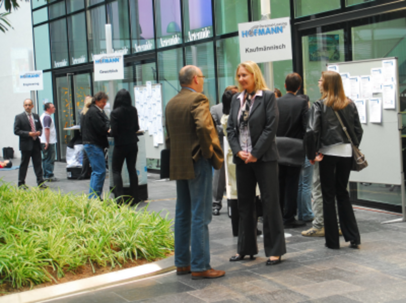 An drei Ständen konnten sich Arbeitsuchende über aktuell zu besetzende Positionen informieren. Unterstützt wurde das Hofmann-Team von der AOK, die jedem Interessierten gerne eine Gesundheitsberatung anbot und vom Deutschen Roten Kreuz, das „Erste Hilfe Tipps“ gab. Gleichzeitig gab es noch eine Tombola, deren Erlös über 315 Euro an den Verein „Hilfe für krebskranke Kinder“ übergeben werden konnte. (www.hfkk.de/frame.html)