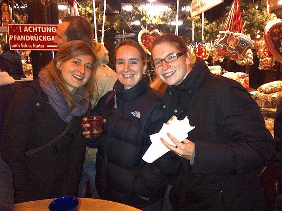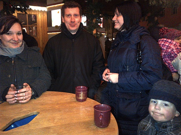 Der Schweinfurter Weihnachtsmarkt ist ein schöner Ort, an dem sich Mitarbeiter und Kollegen in ungezwungener Atmosphäre treffen und gemeinsam das vergangene Jahr mit Glühwein und Kinderpunsch ausklingen lassen können. Am vereinbarten Treffpunkt erhielten alle Gäste ihr blaues Armbändchen, mit dem sie sich kostenlos am Bratwurst- oder Glühweinstand stärken oder ihre Kinder mit Popcorn und Mandelbrot versorgen konnten. Auch die Lebkuchenherzen fanden reißenden Absatz.