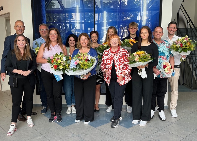 Viele Mitarbeiterinnen und Mitarbeiter, die an einem 1. September in den vergangenen Jahren bei Hofmann Personal angefangen haben, wurden geehrt. Sieben von ihnen sind schon über 20 Jahre Mitglied der Hofmann-Familie. Ute Günther, Abteilungsleiterin für ASI und Einkauf, sowie Thomas Palsa aus der zentralen Lohnbuchhaltung bereichern Hofmann Personal sogar schon 32 Jahre mit ihrem Wissen und Können! Wirklich beeindruckend! Unsere Chefin Ingrid Hofmann bedankte sich bei allen für ihr unermüdliches Engagement und ihre gute Arbeit und überreichte ihnen jeweils einen wunderschönen Blumenstrauß.