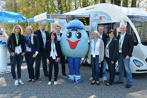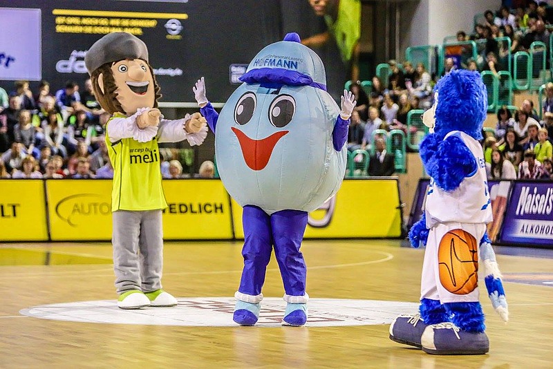 Ein weiteres Highlight des Tages war sicherlich der Auftritt des Hofmann-Maskottchens „Jobby“ zusammen mit „Richie“ von medi Bayreuth und „Wash B!“ vom Ligasponsor BEKO, die mit ihrer Macarena-Tanzeinlage in einer Spielpause den Zuschauern die Wartezeit verkürzten.