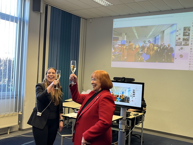 Aufgrund der schwierigen Wirtschaftslage hat sich unsere Chefin Ingrid Hofmann gegen eine große Feier mit allen Mitarbeiterinnen und Mitarbeitern entschieden. Stattdessen haben wir mit allen Niederlassungen, Töchtern und Marken virtuell bei Pizza und Champagner gefeiert.