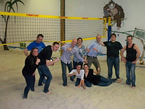 Anstatt zu Lebkuchen und Glühwein lud das Team seine Mitarbeiter in die Indoor-Beachsport-Anlage „Gestrandet“ in Augsburg ein. Beachvolleyballfelder mit beheiztem Sand forderten die sportlichen Ambitionen der Mitarbeiter, eine Strandbar und zahlreiche Liegen verführten zum Entspannen. Eine riesige Pfanne mit Fajitas und eine Eistorte mit 75 Kugeln Eis sorgten für das leibliche Wohl. So wurde im Wechsel gespielt, gegessen und wieder gespielt. Da nicht alle 42 Teilnehmer gleichzeitig aufs Spielfeld gehen konnten, nutzten die freien Spieler die Zeit für Tischtennis, Billard oder Kicker in den Nebenräumen. Am Ende eines langen, aber äußerst kurzweiligen Abends waren sich alle einig: eine tolle Idee!