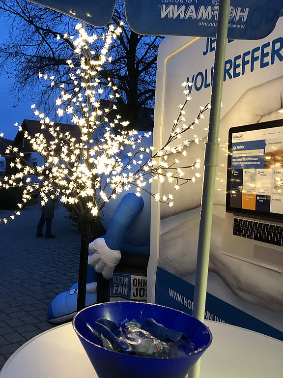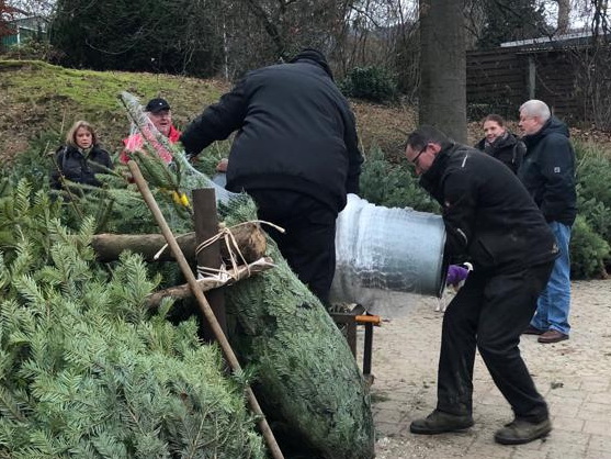 Dezember 18 – Die wenigsten können sich Weihnachten ohne einen Weihnachtsbaum vorstellen. Wir ehrlich gesagt auch nicht. Darum lud das Hofmann-Team zu einem gemeinsamen Weihnachtsbaumschlagen ein, bei dem sich jeder seinen Wunschbaum aussuchen konnte. Natürlich wollten wir auch die Gelegenheit nutzen, uns für eine gute Zusammenarbeit zu bedanken. Trotz eisiger Kälte blieben viele Gäste länger, zumal der nette, angegliederte Weihnachtsmarkt mit Ständen mit handgefertigtem Schmuck, Taschen, Marmeladen bis hin zum Vogelhäuschen zum Schlendern einlud.