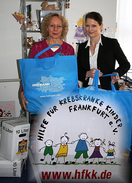 Dezember 13 - Die in 1994 gegründete "Frankfurter Stiftung für krebskranke Kinder" betreut krebskranke Kinder und deren Angehörige. Für eine kleine Weihnachtsfreude sorgten Anja Tauber und Jana Engels, die Geschenktüten mit bunten Schals, Schokolade und einem netten Weihnachtsgruß an die Vereinsmitarbeiterin Monika Waltz überreichte. „Die Schals kommen bei den Kids gut an, denn aufgrund ihres geschwächten Immunsystems frieren die Kinder schneller. Und toll, dass die Schokolade keine Nussspuren enthielt, so ist sie für alle gut essbar!“, meinte sie.