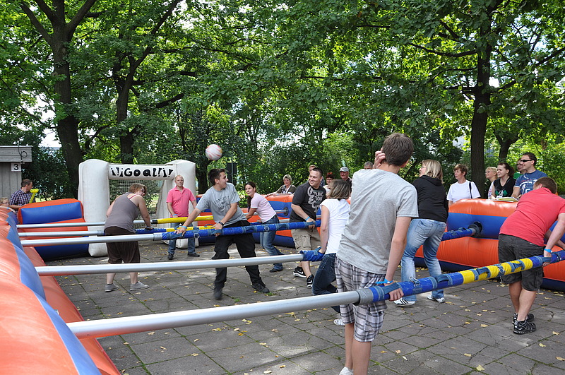 September 2012 - Familientag im egapark!Los ging‘s zu einer familienfreundlichen Zeit um 10:00 Uhr – das Programm war umfangreich und sorgte für Kreativität, sportlichen Einsatz, vielseitige Besichtigungsmöglichkeiten und vielem mehr. So zeigten sich die Besucher beim Human-Football-Table von ihrer sportlichen Seite und verteidigten energisch ihre Mannschaft, während die jüngeren Teilnehmer im Spukschloss ihr Unwesen trieben. Für die Stärkung zwischendurch gab es kühle Getränke und Deftiges vom Grill.