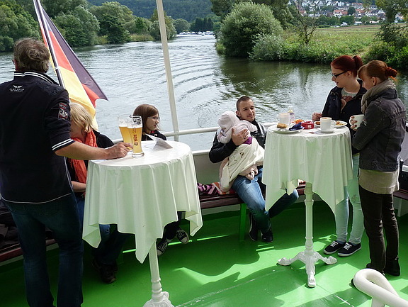 September 2015 – „Zum Jubiläum sollte es etwas Besonderes ein. Darum luden wir unsere Mitarbeiter zu einer Schifffahrt auf der Fulda ein, um gemeinsam das 30jährge Bestehen der Firma Hofmann zu feiern. Das Schiff nahm um 11 Uhr seine zweistündige Fahrt Richtung Münden auf und bei gutem Essen, netten Gesprächen und Musik haben wir es uns gut gehen lassen“, erzählt Katrin Malm.