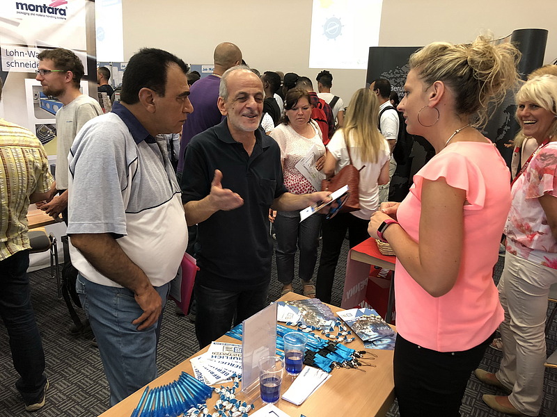 Juni 18 – Über 500 Besucher informierten sich auf der 1. Integrationsmesse Mittelsachsen über Berufschancen. Der Großteil der Gäste waren Flüchtlinge und Asylbewerber, die einen Karriereeinstieg suchen. „Wir können viele tolle Jobs in nahezu allen Branchen anbieten“, erzählt Personaldisponentin Steffi Dittrich.