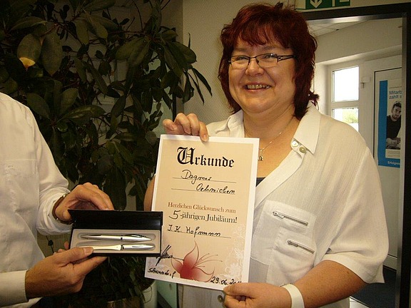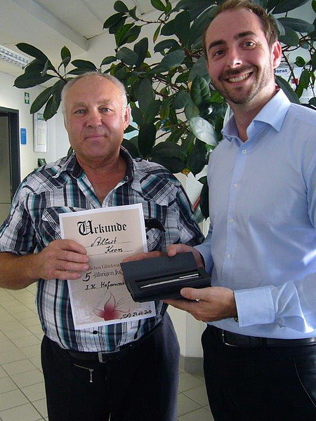 Als Dankeschön erhielten alle Jubilare eine Urkunde sowie einen gravierten Kugelschreiber mit ihrem Namen und dem Datum des 5-jährigen Jubiläums.